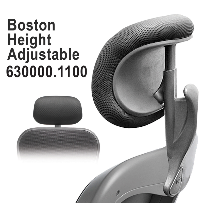 Boston Chair Height Adjustable Headrest, Core #680010. Overall Dimensions: Width: 14"; Height: 7.5"; Height Adjustment Range: 3"