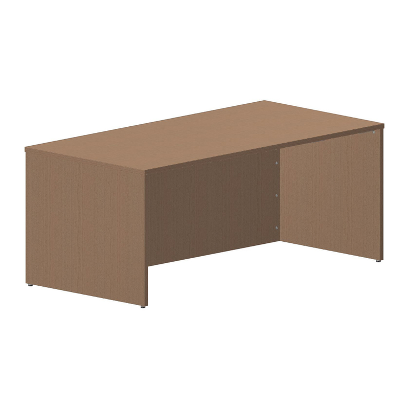 Tribute sets the stage for a high-performance workplace, featuring a durable 1" thick worksurface with a distinctive 3 mm PVC edge detail. The scratch-, spill-, and stain-resistant high-pressure laminate offers the aesthetic and performance of real hardwood. The desk shell includes adjustable leveling floor glides and an inset modesty panel on the guest-facing side. This thoughtful inset design allows guests to pull chairs in closer and provides ample clearance for mounting a monitor arm.